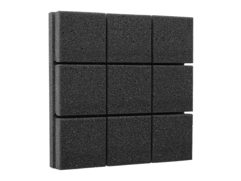 Продается кратно 9 штукам. Практичная и безопасная панель из негорючего акустического поролона Ecosound Tetras Black сделана из качественного акустического поролона, одного, который используется для коррекции первичных акустических отражений. Данные панели используются в помещениях с повышенными требованиями к акустике, включая изоляционные кабины, дикторские, звукозаписывающие студии и любые другие помещения, где необходимо улучшить акустику и качество воспроизводимого звука. Данная панель сделана из негорючего (самозатухающего) акустического поролона. Относительно небольшая стоимость, идеальные звукопоглощающие свойства и простой монтаж, делают данные панели высокоэффективными в коррекции нежелательных акустических переотражений в помещении.