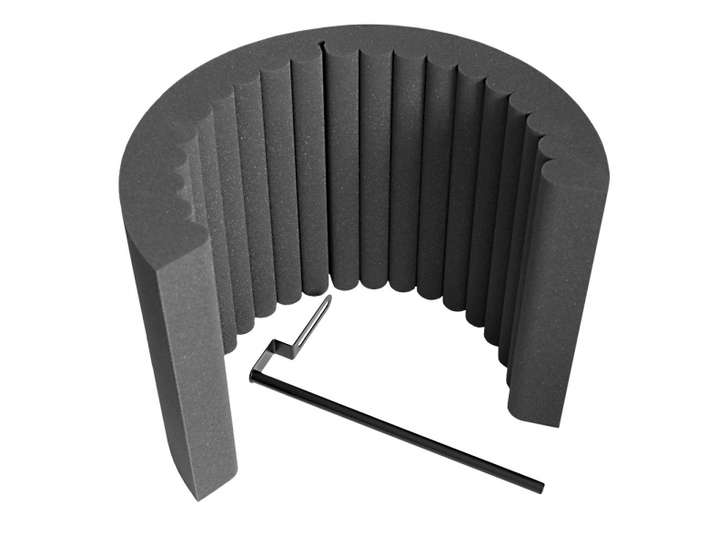 Акустический экран для студийного микрофона состоит из акустического поролона. Именно это способствует хорошему поглощению и рассеиванию посторонних звуковых волн. Постепенно проходя через акустический поролон, волна звука теряет свою силу и энергию, что в конечном результате приводит к тому, что на сам микрофон попадает только незначительная часть этой энергии.