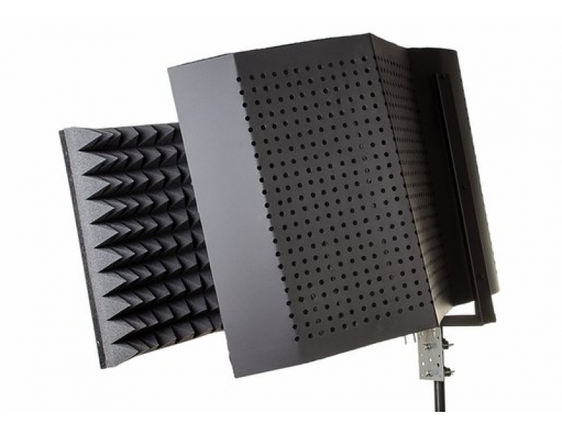 Многослойная панель, которая является портативной и предназначена для записи вокала, музыки или речи в помещении с некачественной акустикой называется акустический экран для микрофона. Данное приспособление представляет собой панель сложной неоднородной конструкции, которая монтируется на стойку микрофона благодаря крепежам, входящих в комплектность. Экран можно установить за микрофоном самой разнообразной модели в любом удобном для вас положении.