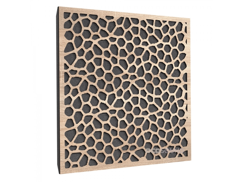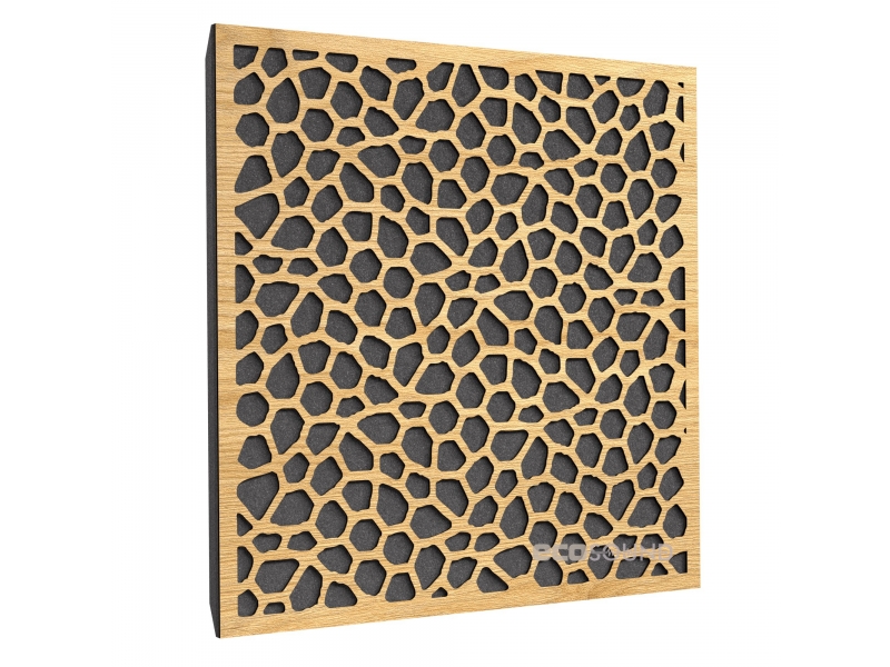 Лицевая сторона плиты изготовлена из прессованной древесины дорогих пород дерева пропитанной магнезитом. Это качество позволяет убрать лишнюю вибрацию на высоких частотах звучания звука. Обратная сторона представляет собой акустический поролон, который полностью поглощает все посторонние шумы, создавая естественную акустику в помещении.
