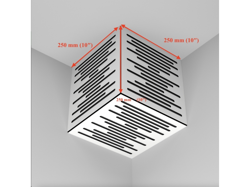 Пример применения  Комплект басовая ловушка Ecosound Vortex Bass trap mini wood 500x200x100 3 шт + куб цвет в ассортименте