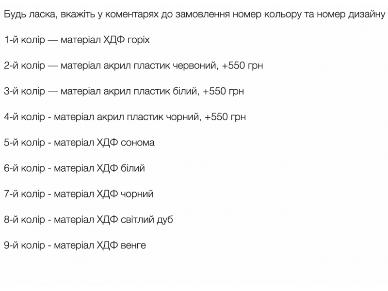 4й цвет- материал акрил пластик черный,+550 грн