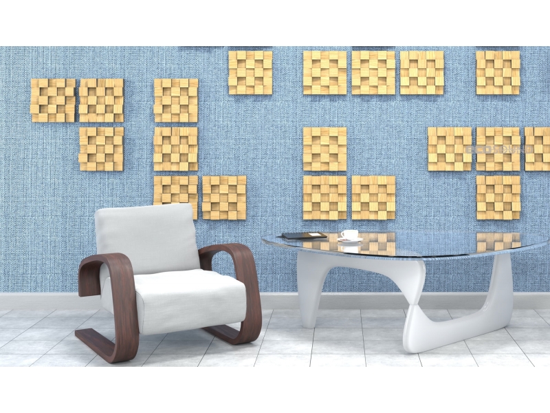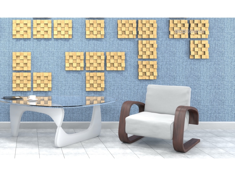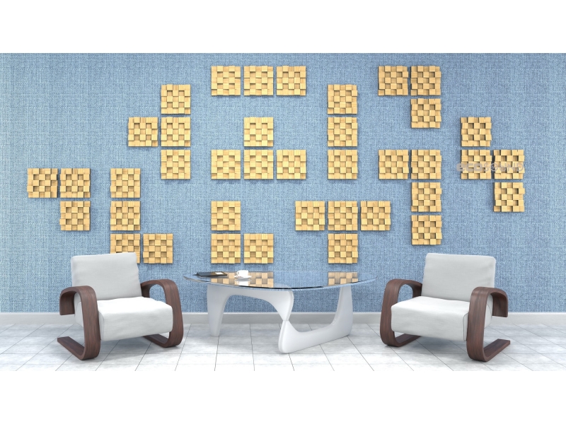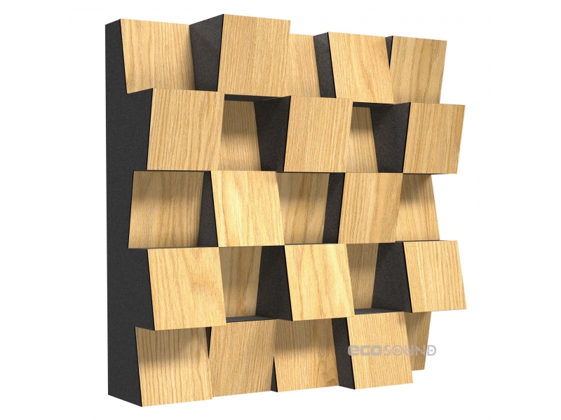 Пример применения  Акустический диффузор-рассеиватель Ecosound Ecodiff SM Sherwood-Oak 25 х 25 см 53 мм светлый дуб