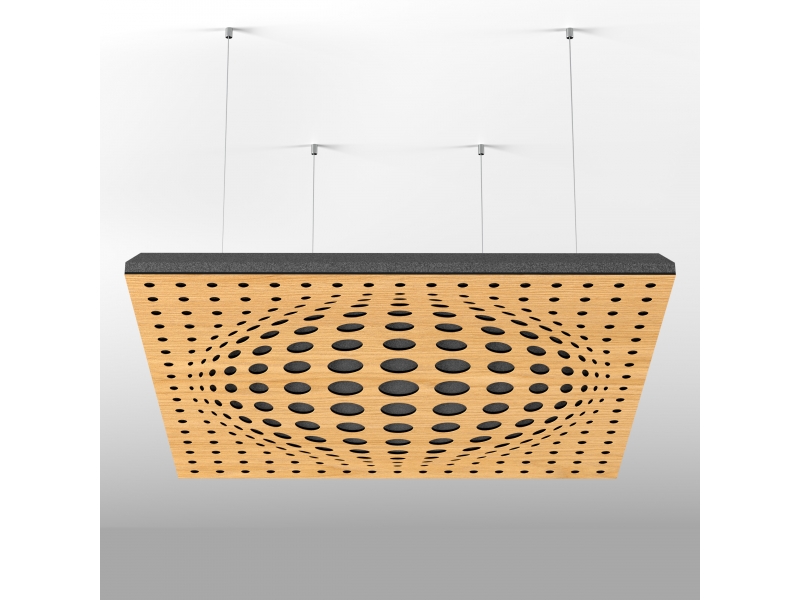 • Візуалізація проекту з використаннямАкустична підвісна звукопоглинаюча панель Ecosound  Vertex 500х500мм 50мм Колір світлий дуб
